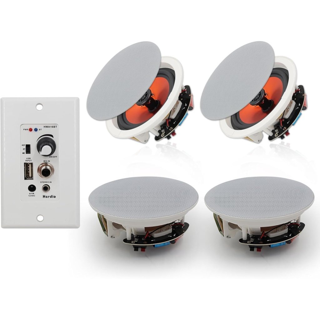 Herdio 6.5” Bluetooth in Wall in Ceiling Speakers 600W 2-Way Flush Mount
