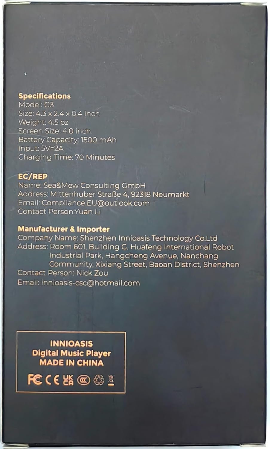 💝160GB Large Storage-The Innioasis Spotify player is designed with 8-core processor , 2GB RAM and 32GB ROM storage for smooth program execution. Moreover, the spotify music player includes a 128GB SD card that can store all the songs you’ve cherished for years, freeing up space in your phone’s memory. Additionally, the player has a memory expansion slot with a capacity of up to 1Tb.
