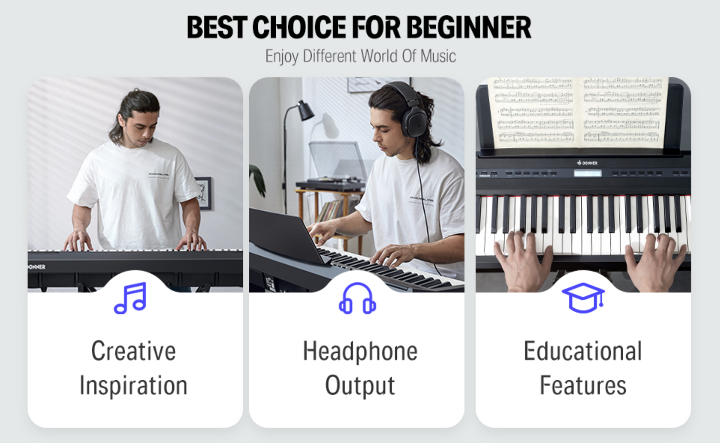 As a parent, there is nothing better than watching your child discover a creative new hobby. When you choose the right piano, you will give them a passion for life and help them appreciate music while teaching them how to overcome challenges and achieve goals. Donner’s DEP pianos offer a wide range of features to give your child more possibilities on their musical journey.
