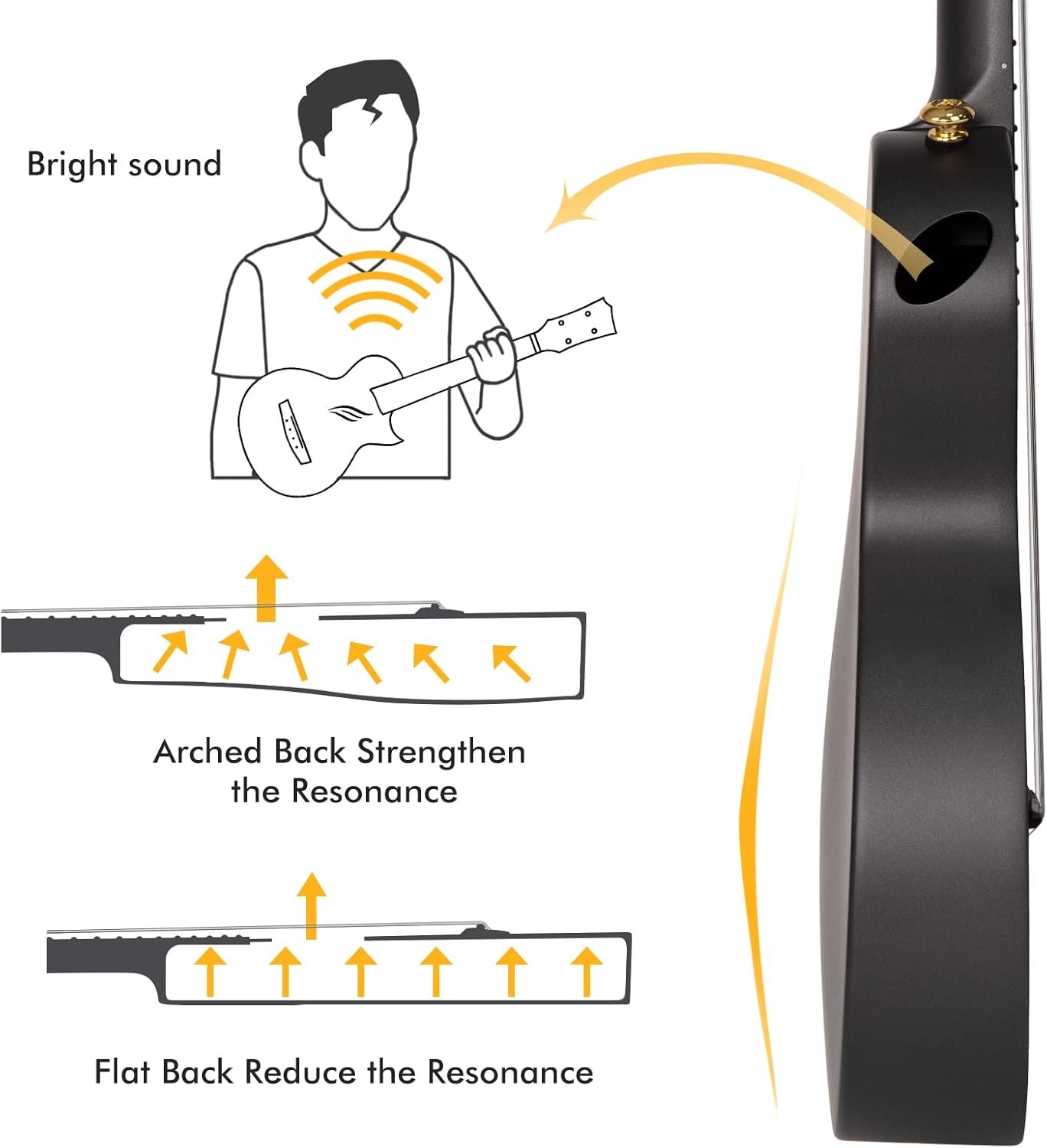 ♫ With the arched back, radius fretboard and cutaway body, this uke is designed for all-level players.