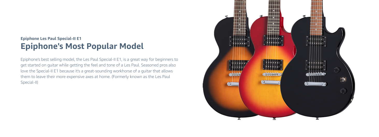 What’s so special about the Epiphone Les Paul Special II Electric Guitar? The super-low price for starters and that’s not all. It gives you all the essential elements of a Les Paul. Made with a mahogany body, bolt-on mahogany neck, smooth 22-fret rosewood fingerboard, this baby is every bit as handsome as its uptown cousins. Features 700T/650R open-coil humbucking pickups that deliver long, singing sustain and true Les Paul tones. The LockTone Tune-O-Matic bridge and stopbar tailpiece add more sustain and make string changing easier. Limited lifetime warranty. Strings: D’Addario; 10, 13, 17, 26, 36, 46
