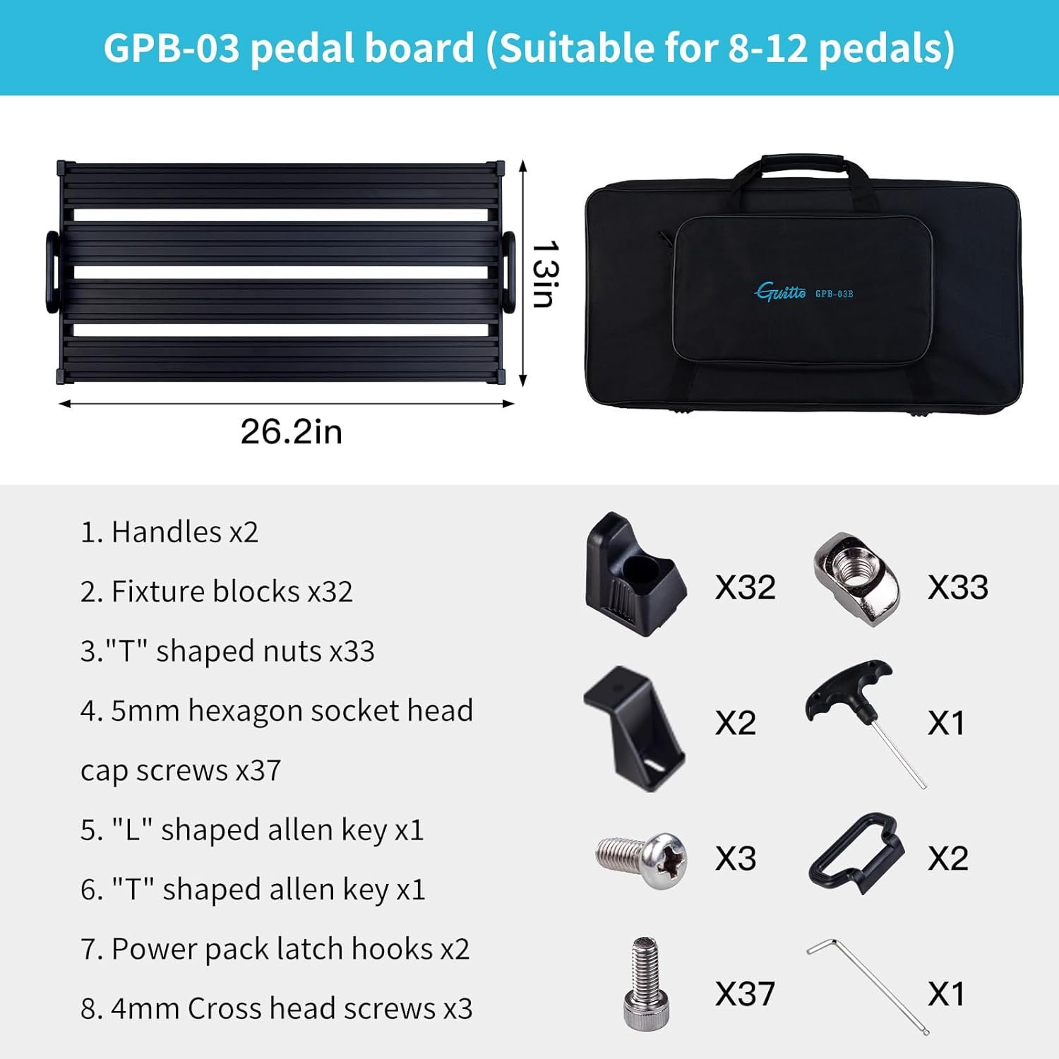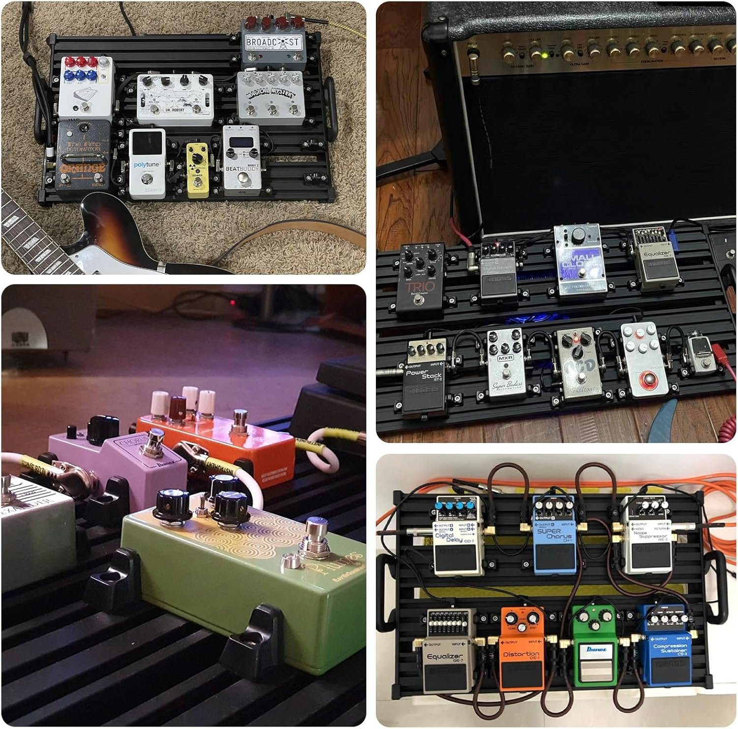 ecure Clip-On Design: This pedalboard features a unique design that securely holds your guitar effects pedals with fixture blocks, making setup and changes quick and hassle-free