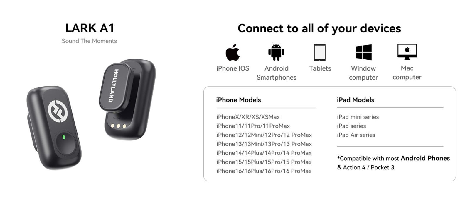 - Customizable Sound with EQ & Reverb Fine-tune audio with LARK A1 wireless microphone’s 3 EQ presets (Balance/Low/Bright) + 3 Reverb modes (Small/Medium/Large). Sculpt clarity, depth, and texture—ideal for podcasters, ASMR creators, and filmmakers using a studio-grade mini mic.
