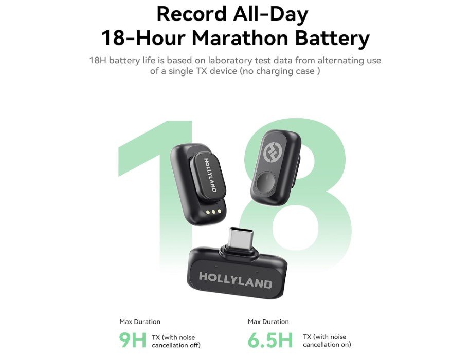 - Up to 54h Battery Life Achieve up to 54h using one transmitter (TX) alternately with the charging case—ideal for long shooting days without battery anxiety.