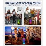 Long Battery Life and RGB Dynamic Lighting Effects: The powerful portable karaoke speaker features multiple lighting modes that sync with the music rhythm, creating an atmospheric light show for your performance. It has a built-in 4500mAh rechargeable high-performance battery, providing continuous usage for 6-8 hours.