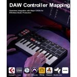 High Cost-performance Configuration: The KB-25 Mini delivers an unbeatable price-to-performance ratio, featuring an arpeggiator, semi-weighted 25-key keyboard, 8 backlit expandable pads, 8 customizable knobs, a pitch bend wheel, modulation wheel, and an OLED display for real-time feedback and full control over your music-making process