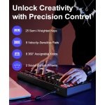 Pitch & Mod for Dynamic Performance: The modulation wheel allows for real-time dynamic changes such as vibrato or filter sweeps, while the pitch bend wheel, with its return-to-center function, ensures quick recovery for expressive performance across a range of virtual synthesizers