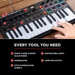 Every Tool You Need – Effortless auto-mapping for DAW controls and plugin parameters; Smart Chord and Smart Scale modes; Arpeggiator; pitch and modulation wheels; sustain pedal input; 1/8″ MIDI Out