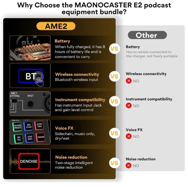 • [Great Compatible]: The MAONOCASTER AME2 is compatible with most analog microphones, including XLR condenser/dynamic microphones, 6.35mm dynamic microphones, and 3.5mm microphones. Note that USB microphones are not supported. You can use the product with MAONO PM320, PM500, and HD300, as well as with microphones from other brands, such as Shure SM7B, Shure SM58, Rode Podmic, Samson Q2U, and others