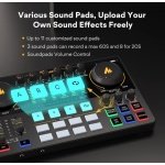 • [Enjoy a Personalized Podcasting Atmosphere]: The audio interface mixer has six reverb modes that you can adjust freely, 12-step auto-tune, 3 modifiable tones (Treble, mid-range, bass), and pitch changer knobs. Each microphone input is independently controlled, and pro features like sidechain, music-only, and loopback switches are included