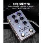 The TIME STRETCH function allows users to change playback speed without pitch changes, while separate outputs can be used for audio playback and drum machine sounds