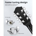 The 1:14 enclosed copper tuning machines enable Moukey Acoustic Guitar tuned finely and smoothly without slipping. Along with hard bridge saddle and bone nut make it easy to tune and hold tune after first tune-up of strings.