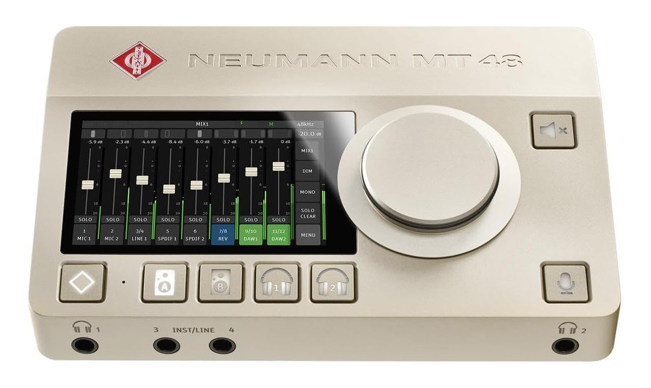 The MT 48 brings Neumann quality to the digital workflow. It is the first audio interface in its class that is able to capture the full dynamic range of Neumann microphones and is optimally matched to the KH-Line of studio monitors and Neumann headphones. The result is an ideal signal chain without any bottlenecks: uncompromising sound quality from the microphone diaphragm to your ear. The MT 48 is an audio interface and digital mixing desk in one. You can use its DSP processing for monitoring only, or you can print effects while recording. Or both at the same time! Thanks to the unique Dual Output Technology, wet and dry signals can be recorded simultaneously via separate driver channels. So, if necessary, you can fall back on an unprocessed backup. Despite its enormous scope of features, the MT 48 always remains easy to operate. All settings can be made on the device itself via the built-in touchscreen. The perfect monitor mix is just a touch away! Simply use your fingers to adjust pan pots, channel faders and much more, without having to switch to a mixer software on your computer. The MT 48 can even be operated stand-alone as a mixing console. The MT 48 leaves nothing to be desired: audio quality at the highest level, built-in DSP processing, comprehensive expandability, and convenient operation via touchscreen. The MT 48 is the missing link in the Neumann universe, connecting microphones, loudspeakers and headphones to create the perfect studio.