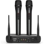 DUAL CHANNEL: This wireless microphone system by Pyle Pro has dual frequency channel and broad audio response range with low distortion so you can enjoy cordless singing to karaoke music and mobility for energetic on stage performance