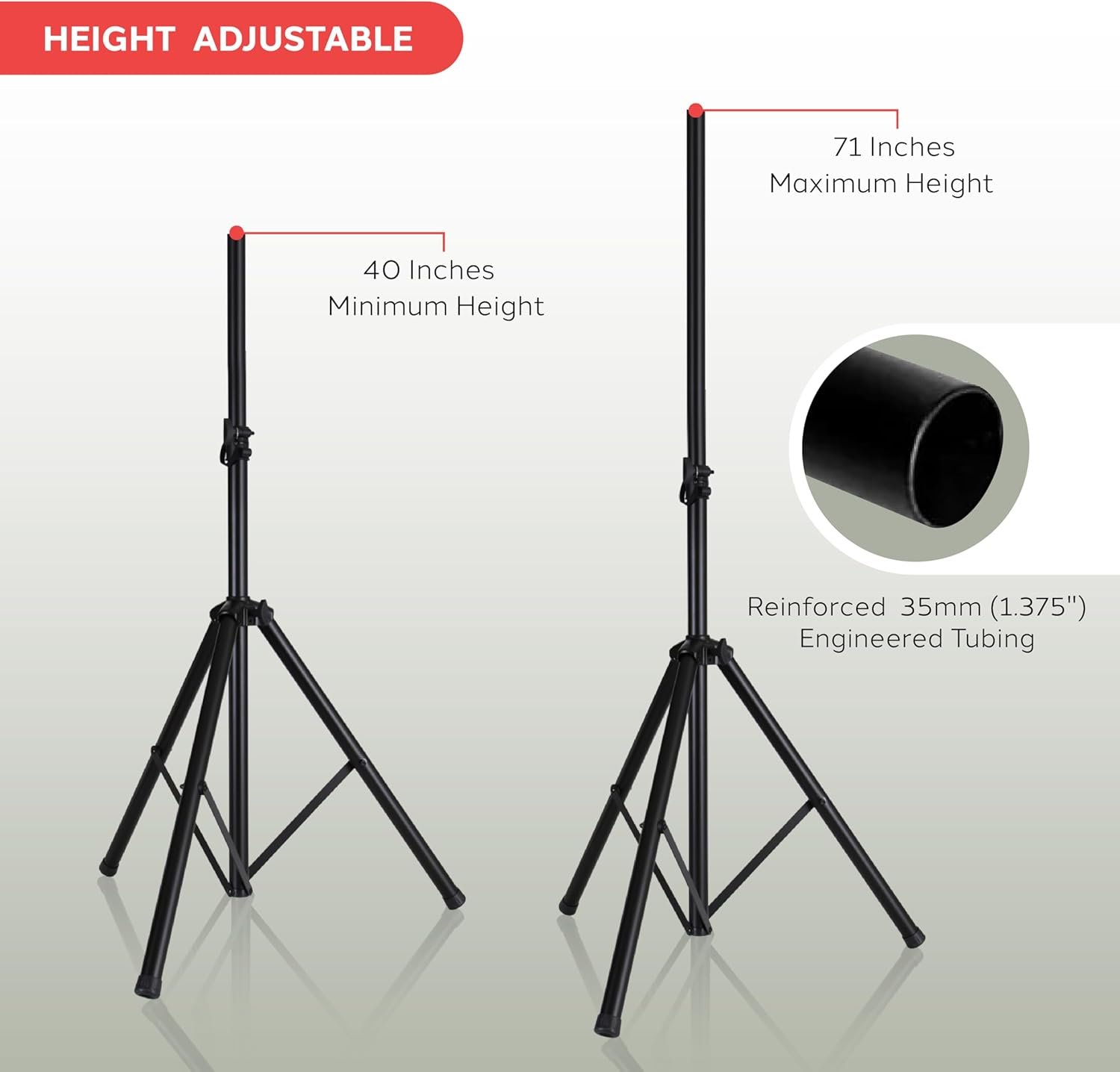 Non Slip Feet: Pyle features Universal floor standing speaker stand as well as non slip rubber feet; The equal length distribution makes the base extremely stable and safe perfect for on stage or in studio use