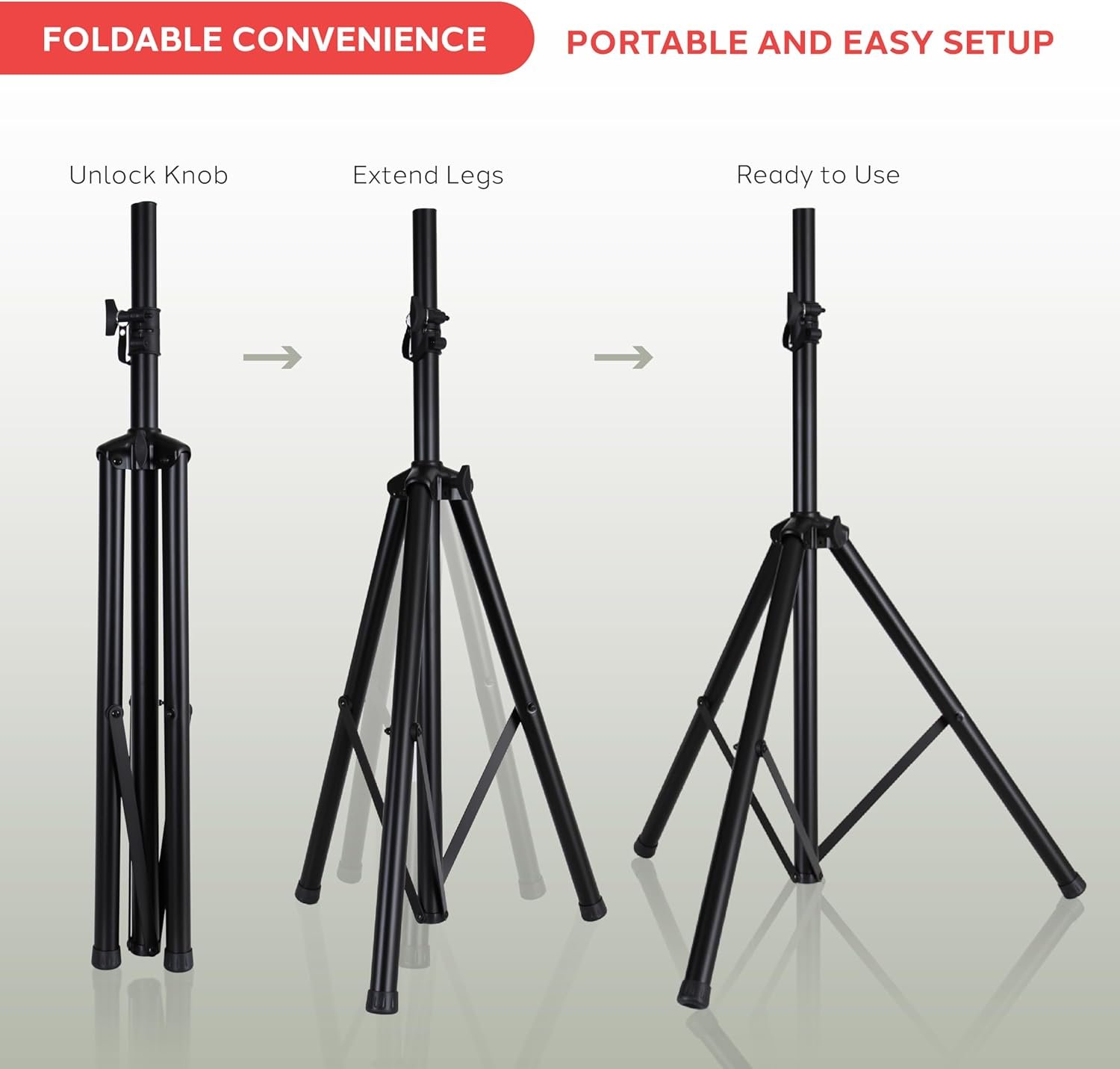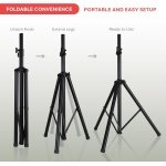 Tripod Leg Design: Center brace connects tripod legs for increased stability; The tripod speaker stands collapse easily to fit inside the bag for easy transportation It can hold speakers of up to 132 pound firmly and steadily for better sound effect