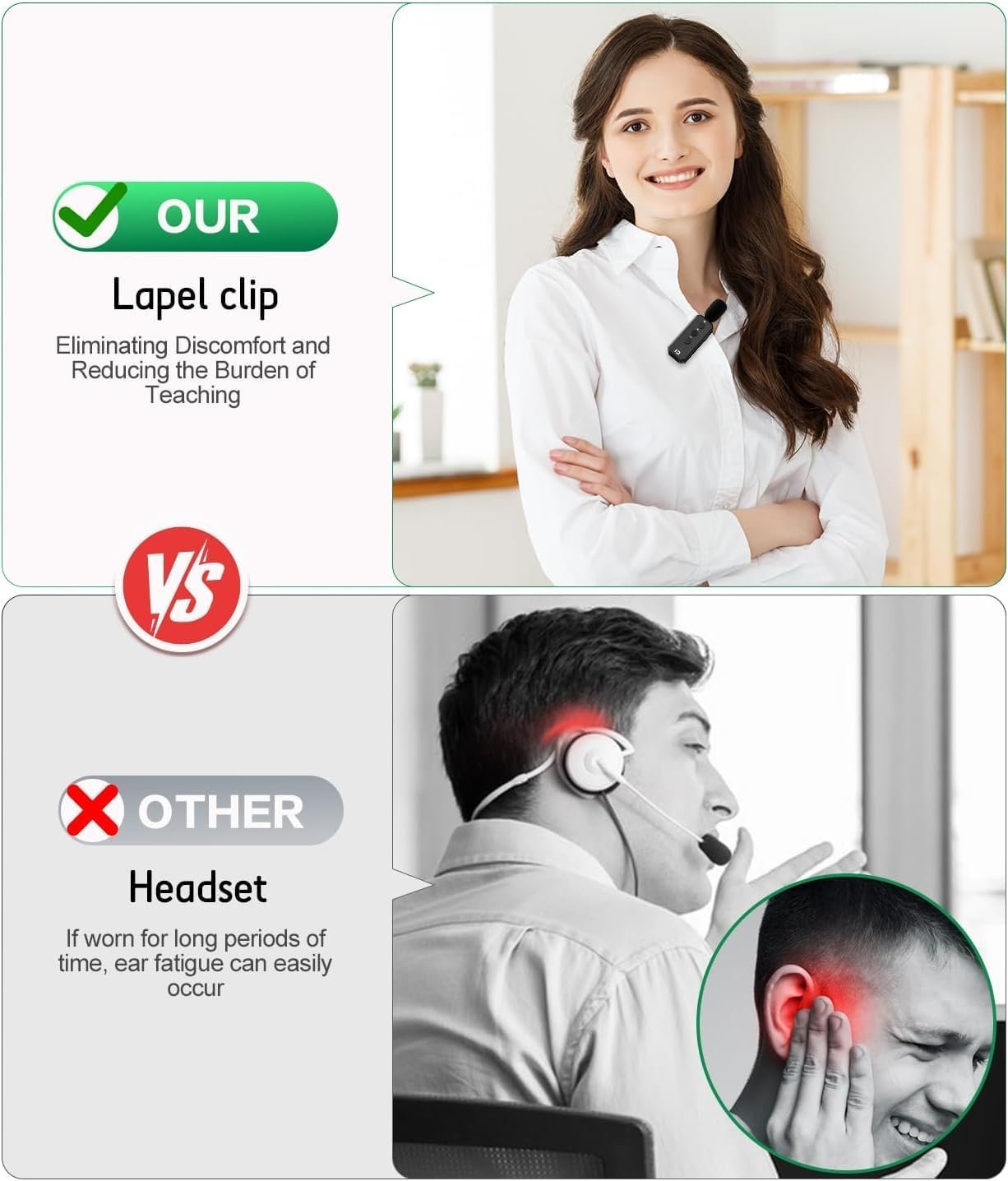 【 Greatly Reduce the Pain of Stuck Ears 】Voice amplifier for teaches has a lightweight clip-on design that can be clipped to your collar or held in your hand, which greatly reduces the discomfort of wearing a headset and allows you to get a better experience when teaching or explaining.