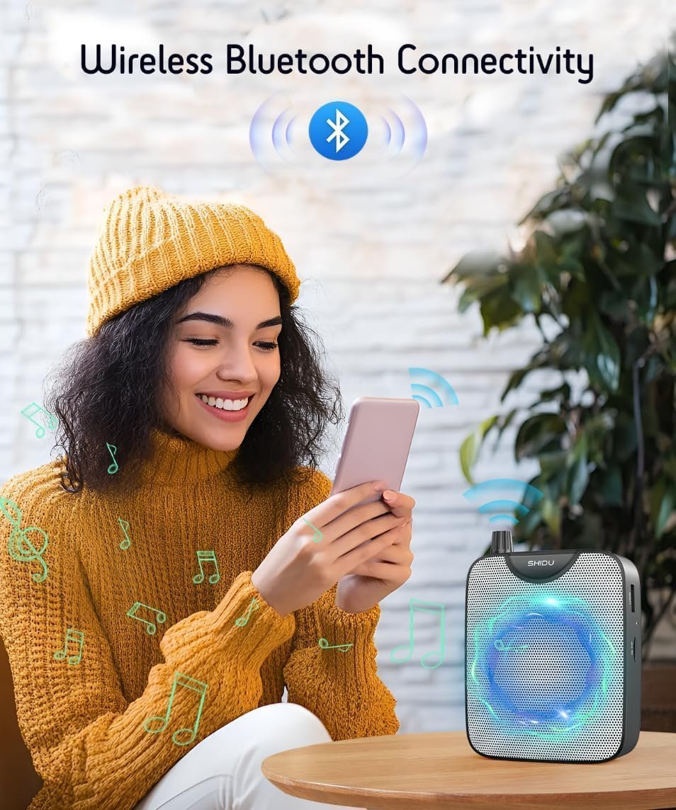 【 Widely Used 】Portable microphone and speaker are small in size and stable in performance. They are very suitable for amplifying your voice and protecting your throat. They can be applied to teaching, training, singing, coaching, tour guides, shopping malls, speeches, yoga, outdoor, etc.