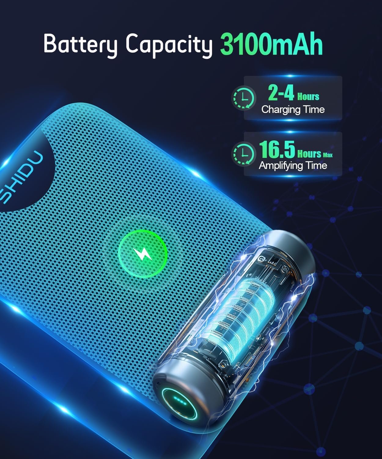 Voice amplifier for teachers has a built-in 3100mAh rechargeable battery, which only takes 2-4 hours to charge on a single charge, providing up to 16.5+ hours of continuous use.