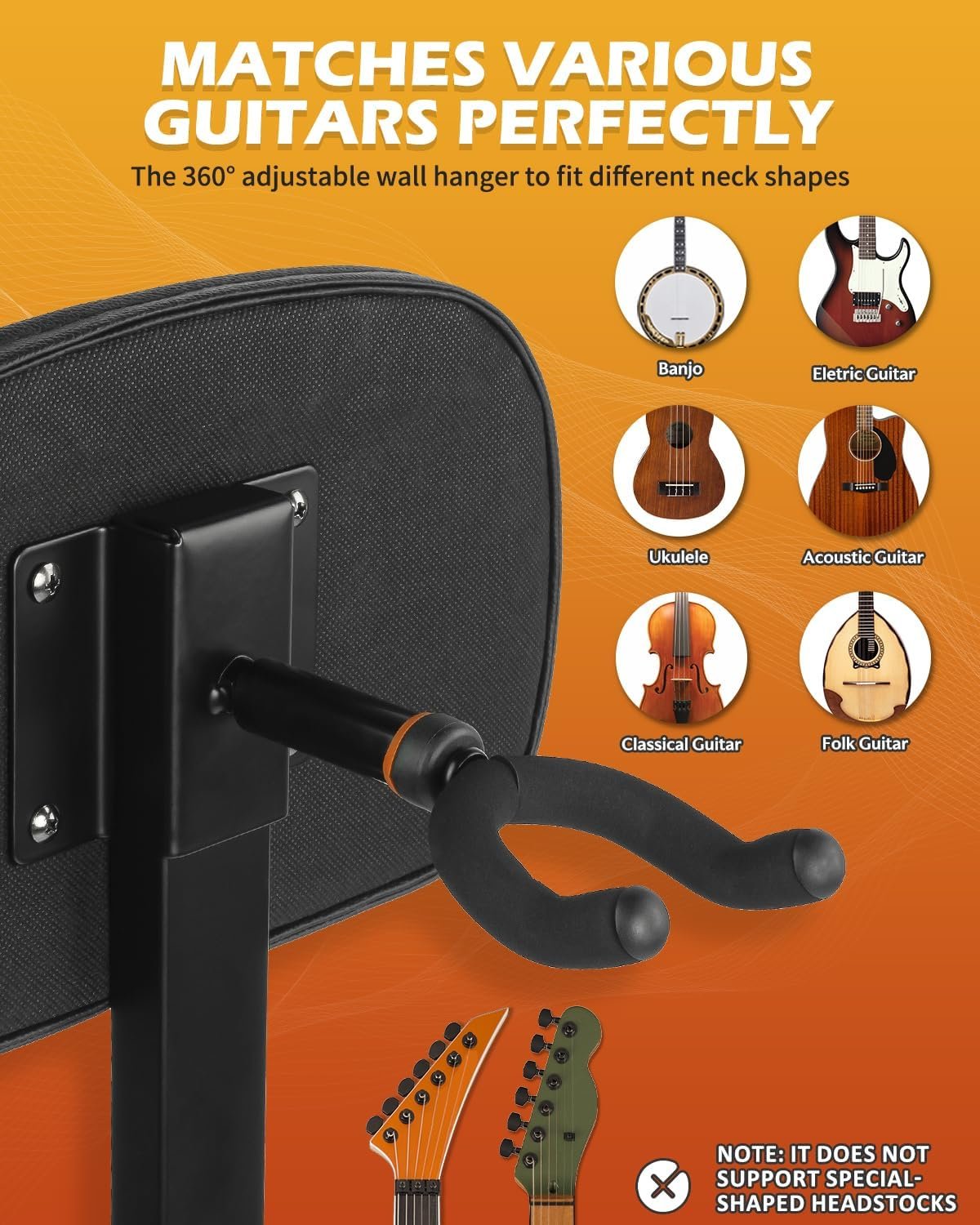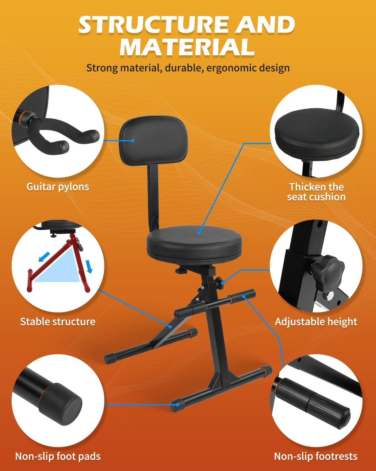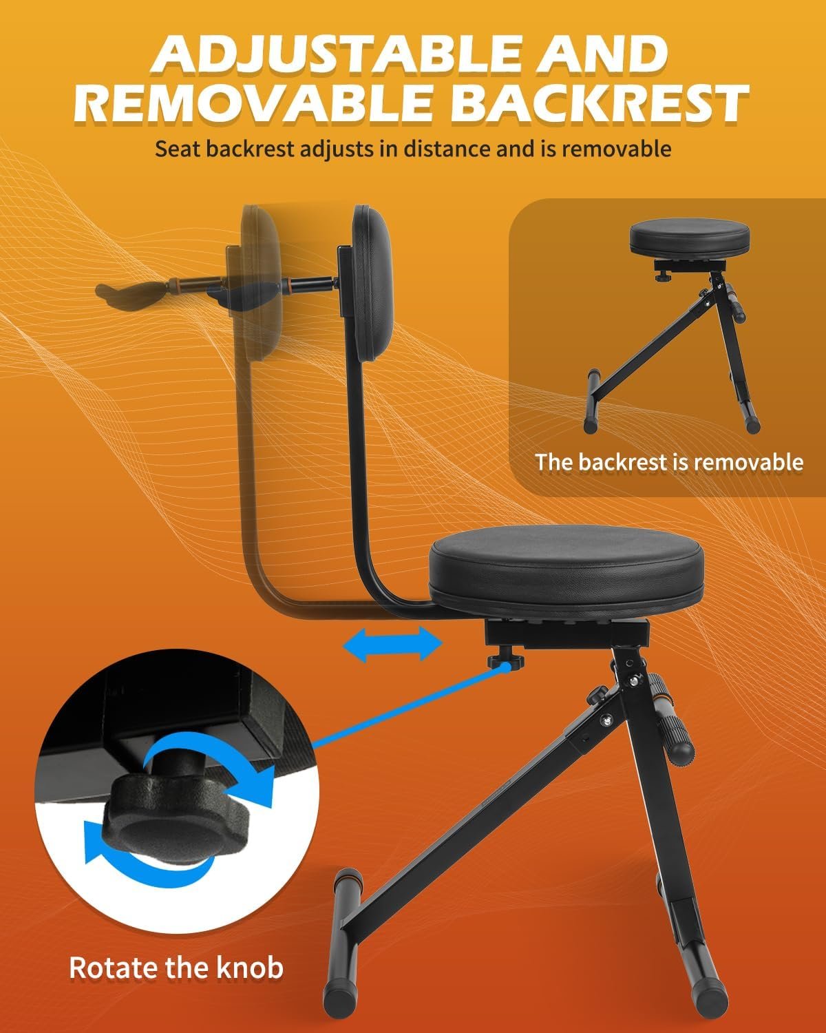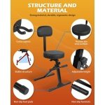 【Convenient and Mobile】The seat and backrest supports can be easily removed, and the main frame folds up for effortless transport and storage. Additionally, the backrest features a secure guitar hanger, designed to hold one instrument safely. Wrapped in soft material, this hanger protects your guitar, making it ideal for classical, acoustic, electric guitars, and basses.