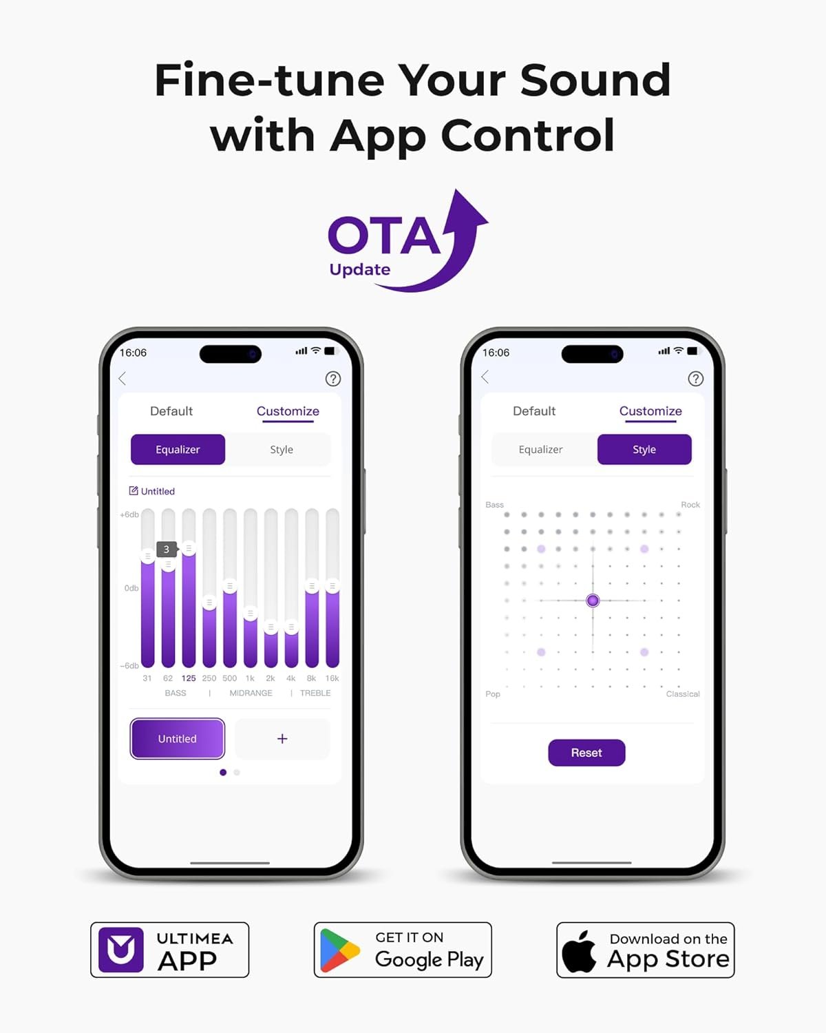Advanced App Control: Fine-tune your listening experience with the Ultimea app. Enjoy a 10-band graphic EQ, 121 sound presets, and 13 adjustable surround levels, letting you tailor audio to your room layout and personal preferences. OTA updates ensure your system stays up to date.