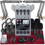 Zoom ZP4 Podcast Recorder: Elevate your podcast with the Zoom ZP4, featuring 4 mic inputs, remote recording, and mix-minus functionality for flawless audio capture.64GB MicroSDXC Memory Card – Store hours of recordings on this reliable, high-speed memory card.4AA Rechargeable Batteries with Charger: Power your devices sustainably with these high-capacity AA rechargeable batteries.4X Headphone Hanger: Keep your workspace organized and your headphones within easy reach4X Zoom DM1-PMP Podcast Mic Pack: Includes headphones, windscreen, XLR cable, and tabletop stand for all-in-one podcasting convenience.Microfiber Cleaning Cloth: Keep your gear spotless with this ultra-soft microfiber cloth, perfect for removing dust and fingerprints.4X Podcasting Set Pop Filter with Boom Arm & Mic Clip: Eliminate plosive sounds for clearer recordings with this essential pop filter.